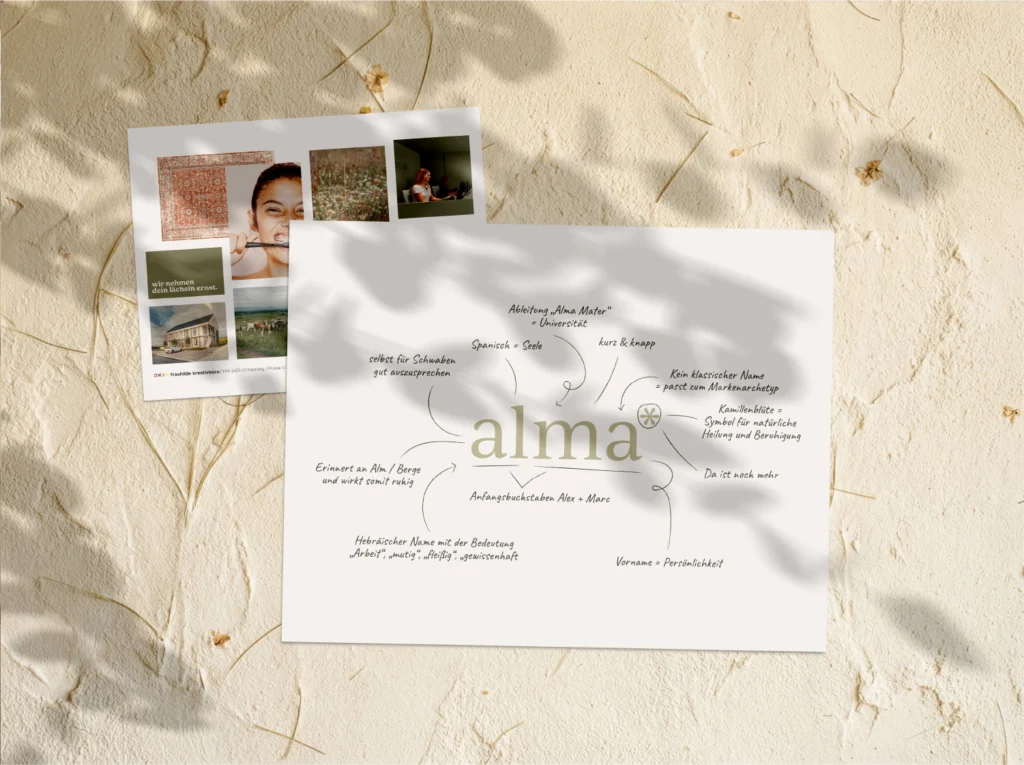 Der Name „alma“ ist kurz, weich, persönlich. Kein klassischer Praxisname, sondern ein Wort mit Bedeutungstiefe. Er klingt nicht nur vertraut, nah und menschlich, in ihm verstecken sich auch ziemlich viele Bedeutungen – manche wurden uns erst nach und nach bewusst.