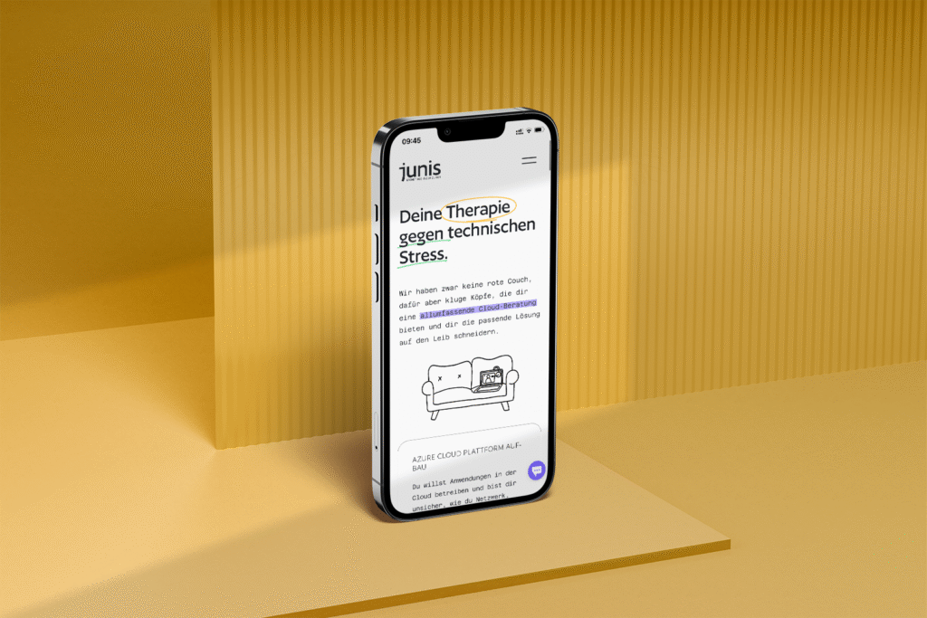 junis ist eine Marke, die so tickt wie die drei selbst. Klar, nahbar, mit Haltung. Das Design schafft Vertrauen, ohne steril zu wirken. Es ist technisch genug, um Kompetenz zu zeigen – und menschlich genug, um Kunden anzusprechen, die keine Cloud- geschweige denn Techniknerds sind.